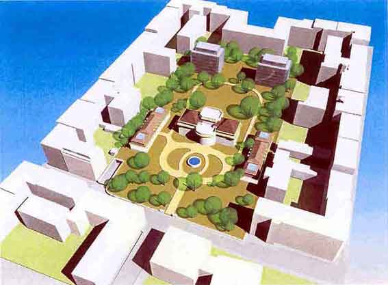 Vorsicht in der Vogelansicht schauen die Höhen falsch aus, die neuen Gebäude würden höher sein, als das Gebäude im Hintergrund.